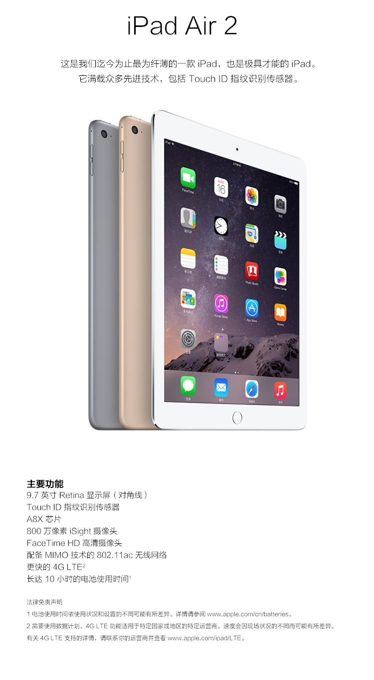 苹果Apple iPad Air2 9.7英寸平板电脑租赁